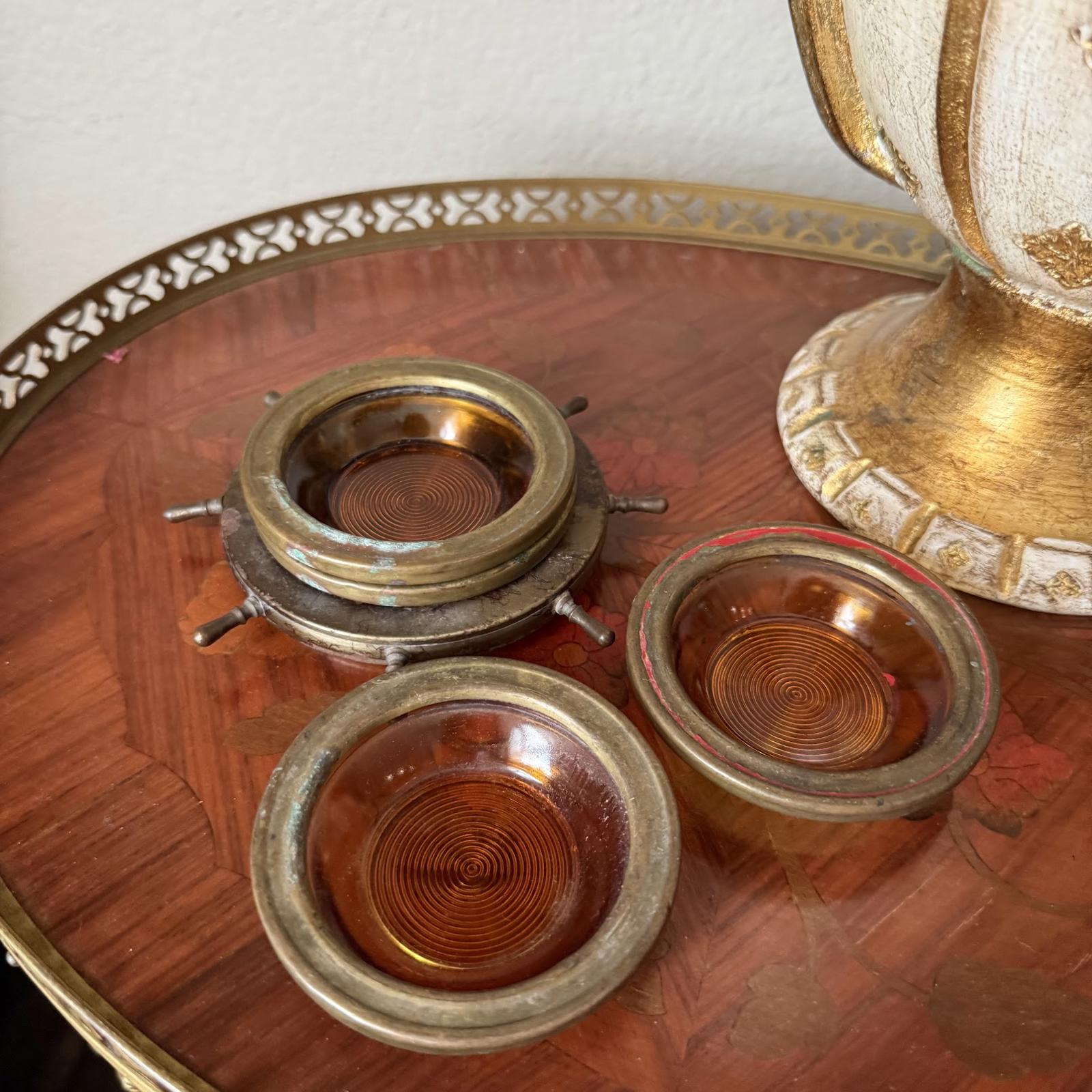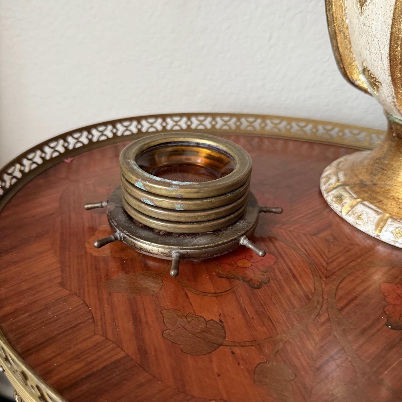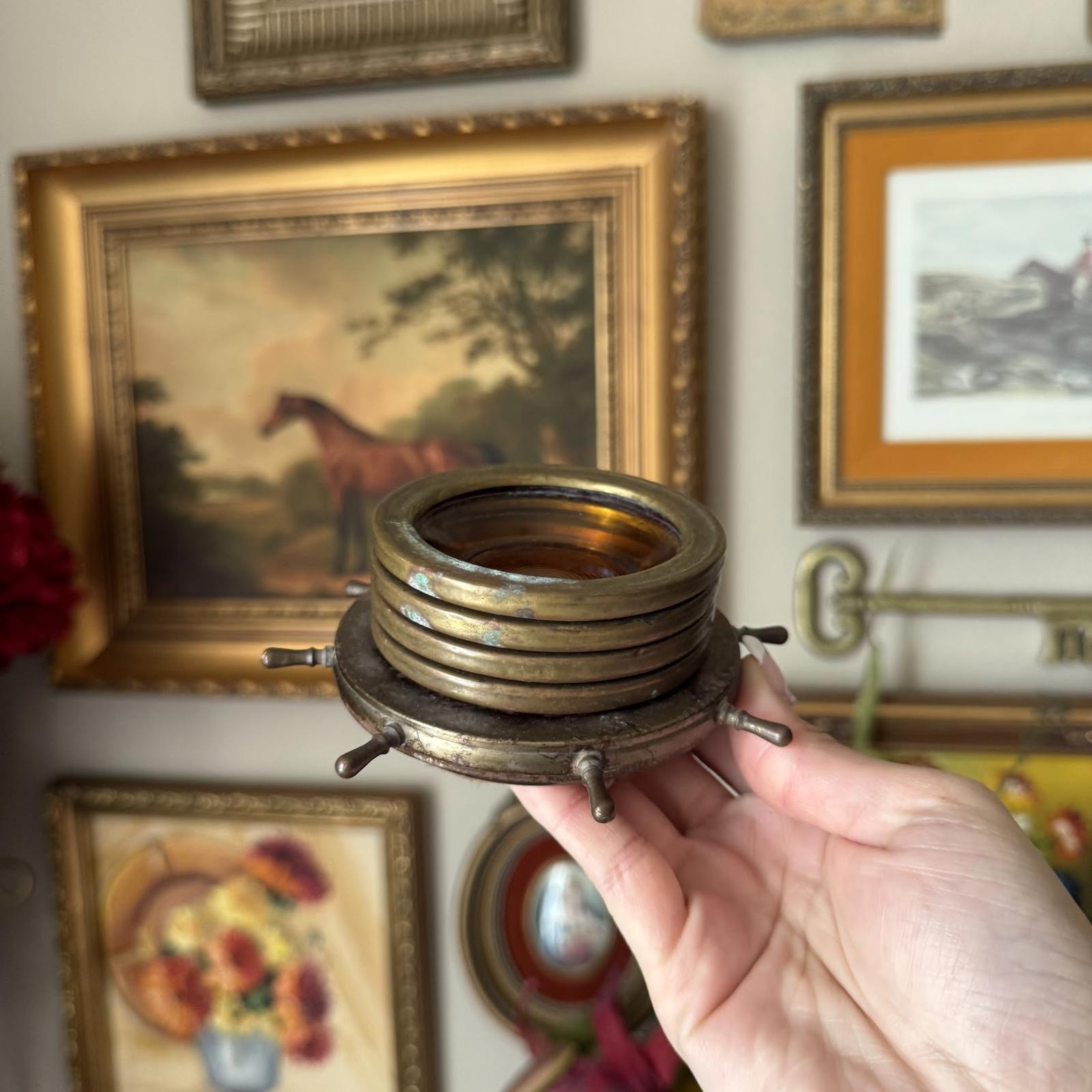 Vintage Ship Steering Wheel Amber Glass Coasters