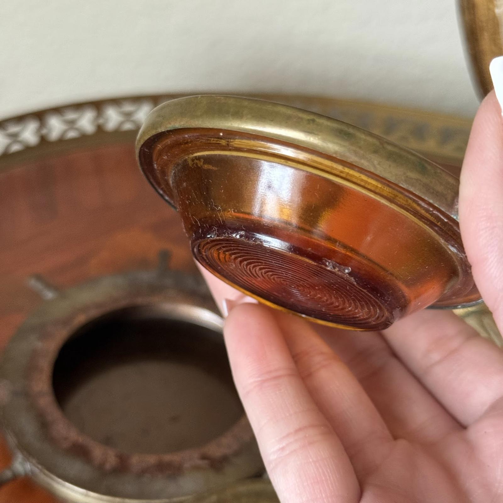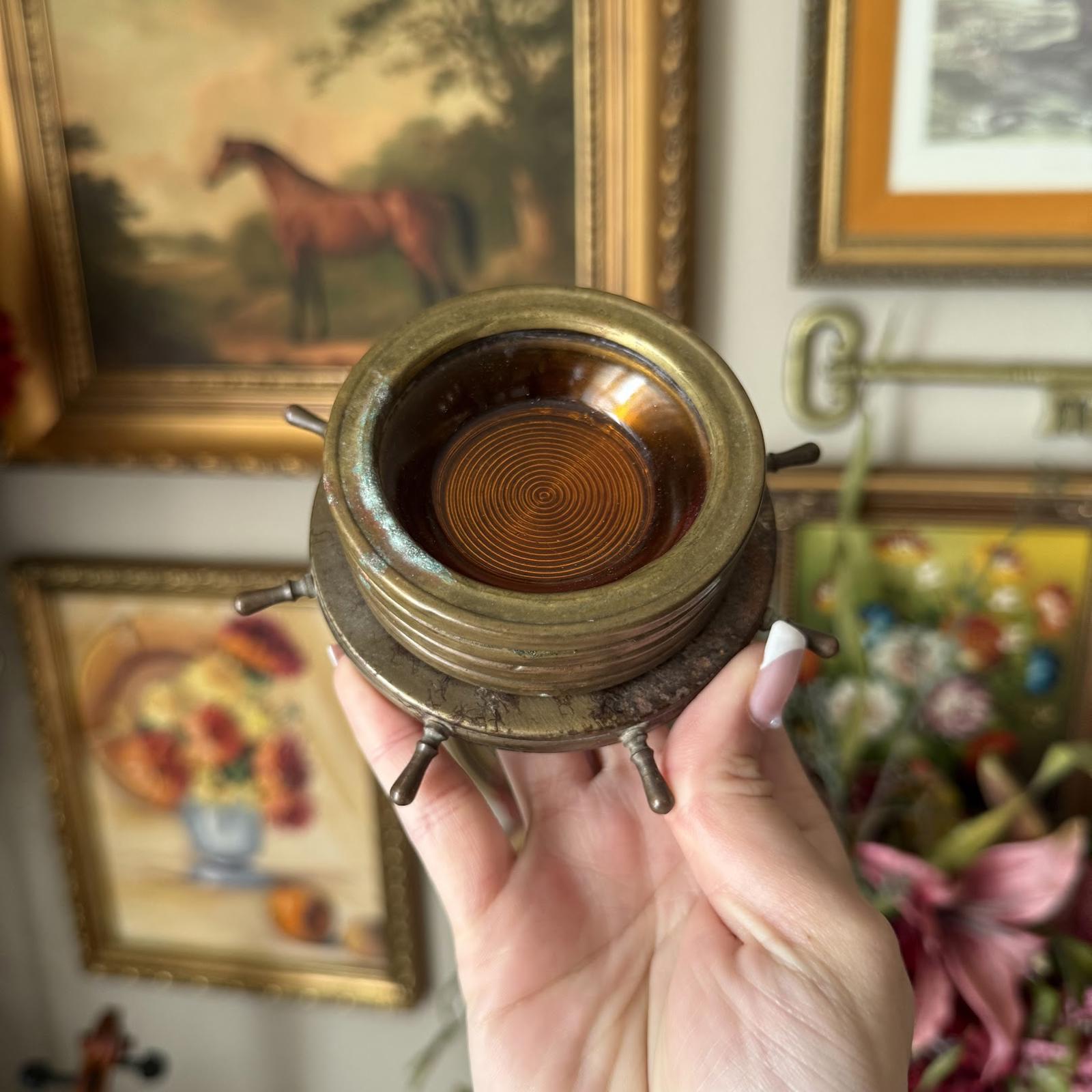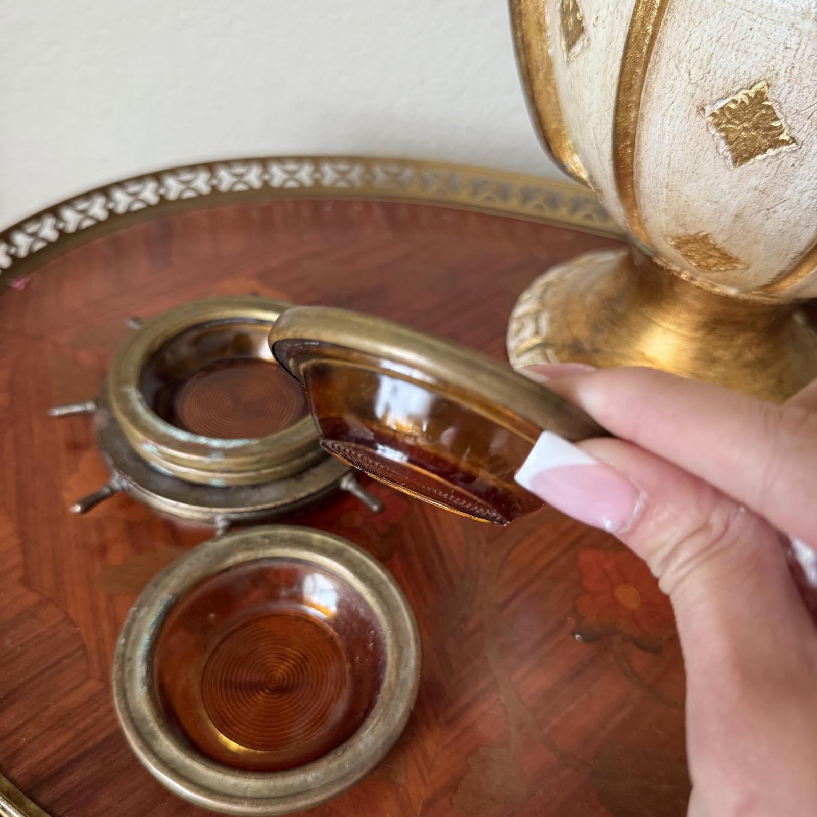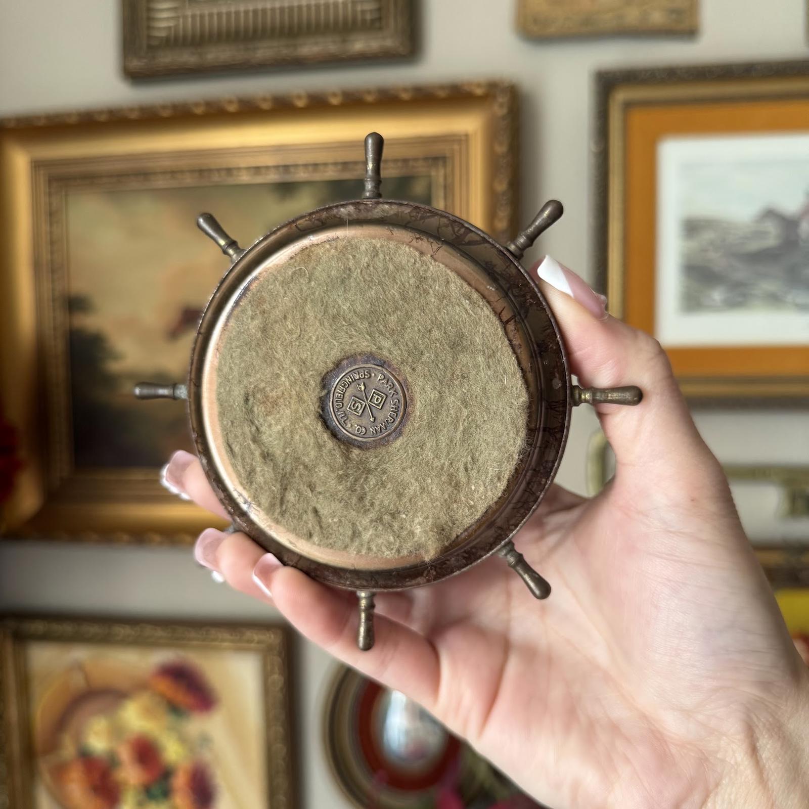 Vintage Ship Steering Wheel Amber Glass Coasters