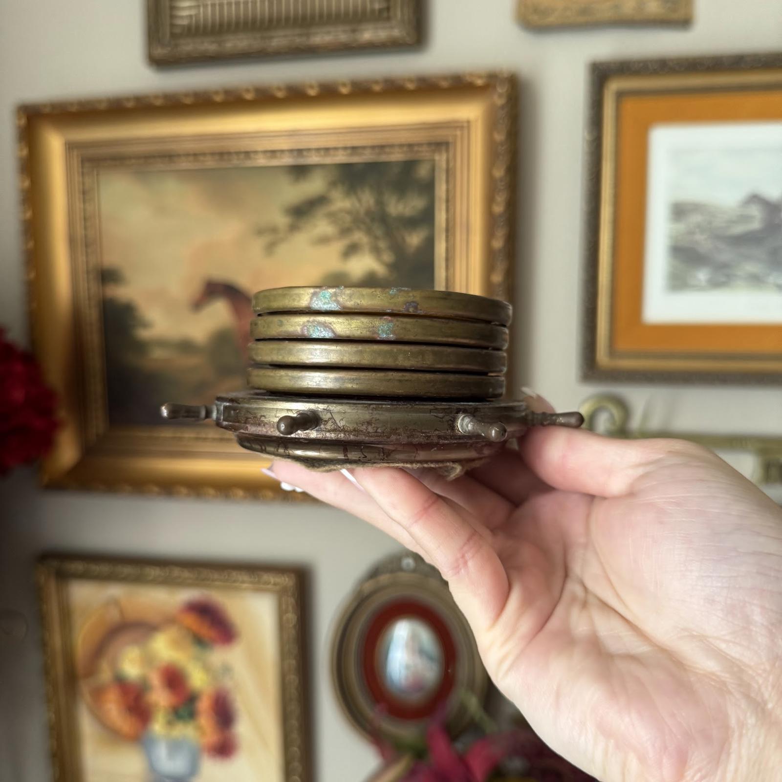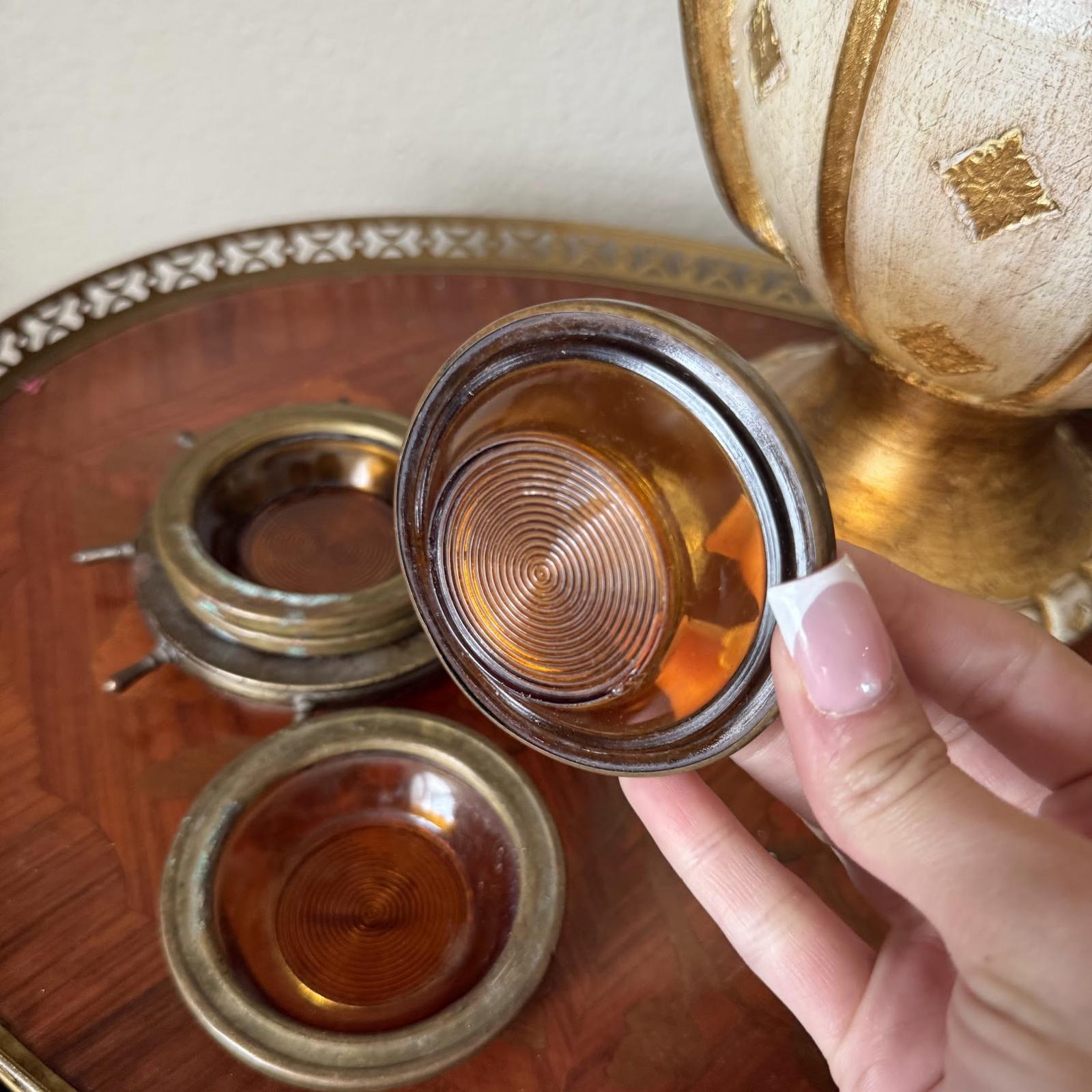 Set of 4 Vintage Ship Steering Wheel Amber Glass Coasters