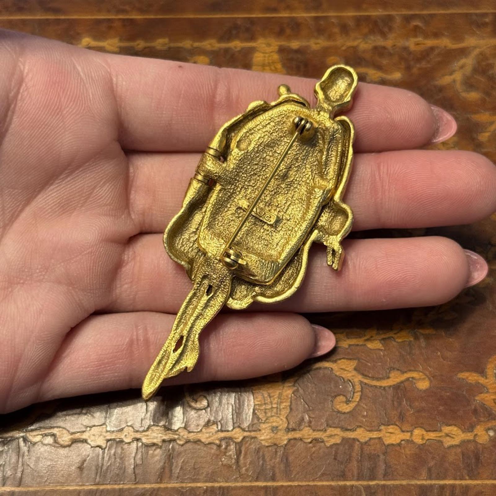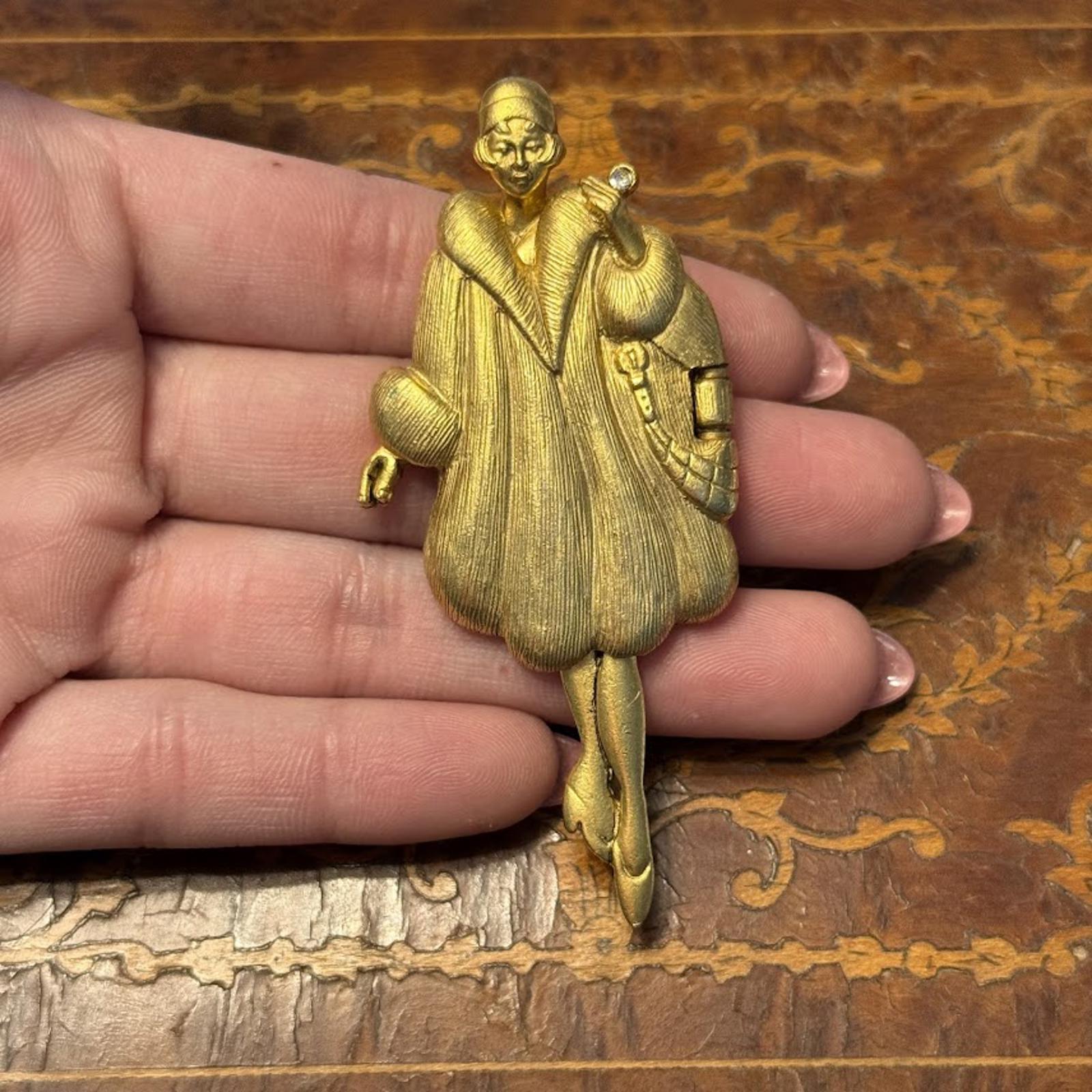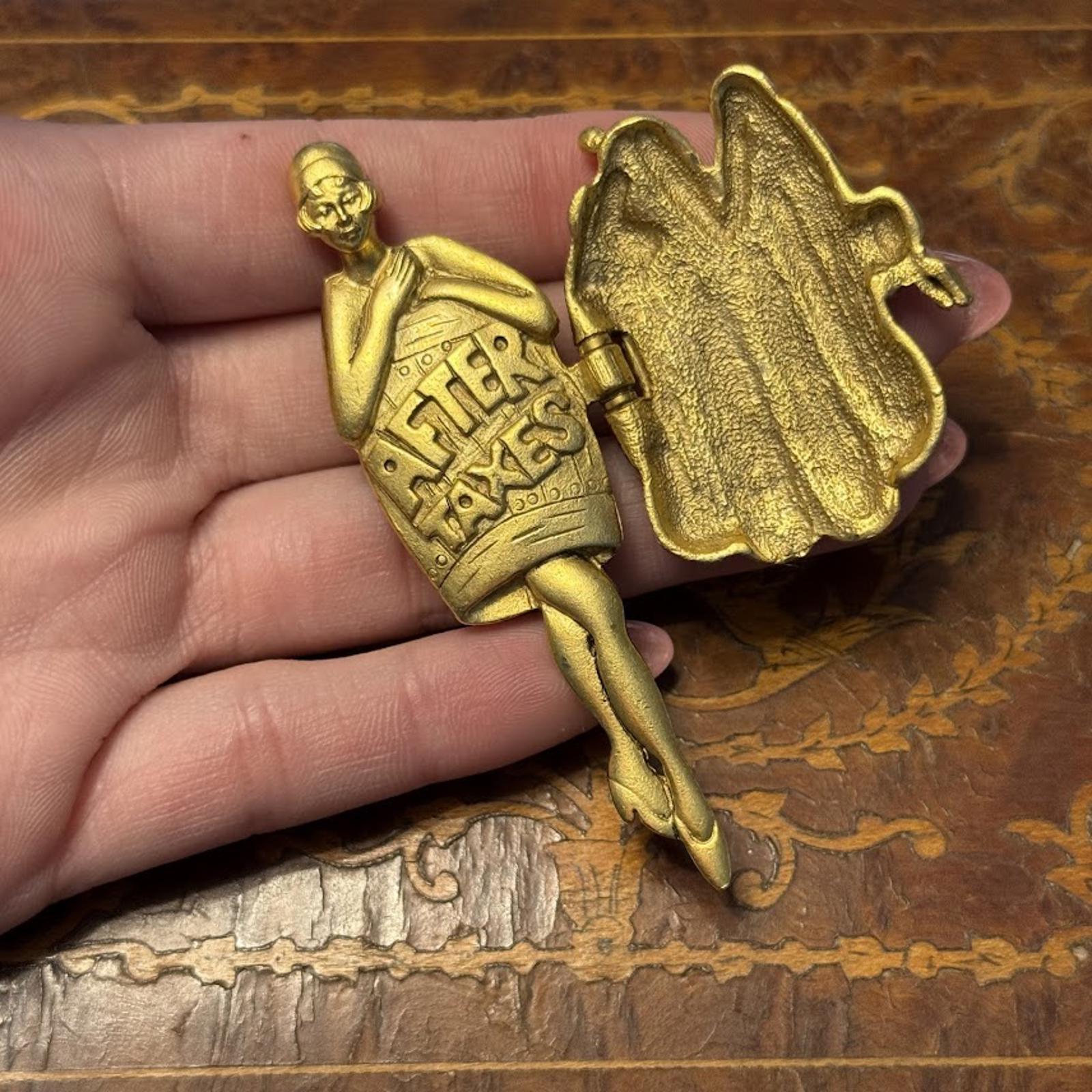 Vintage Signed AJC Gold Toned Brooch Before and After Taxes Fur Coat Lady