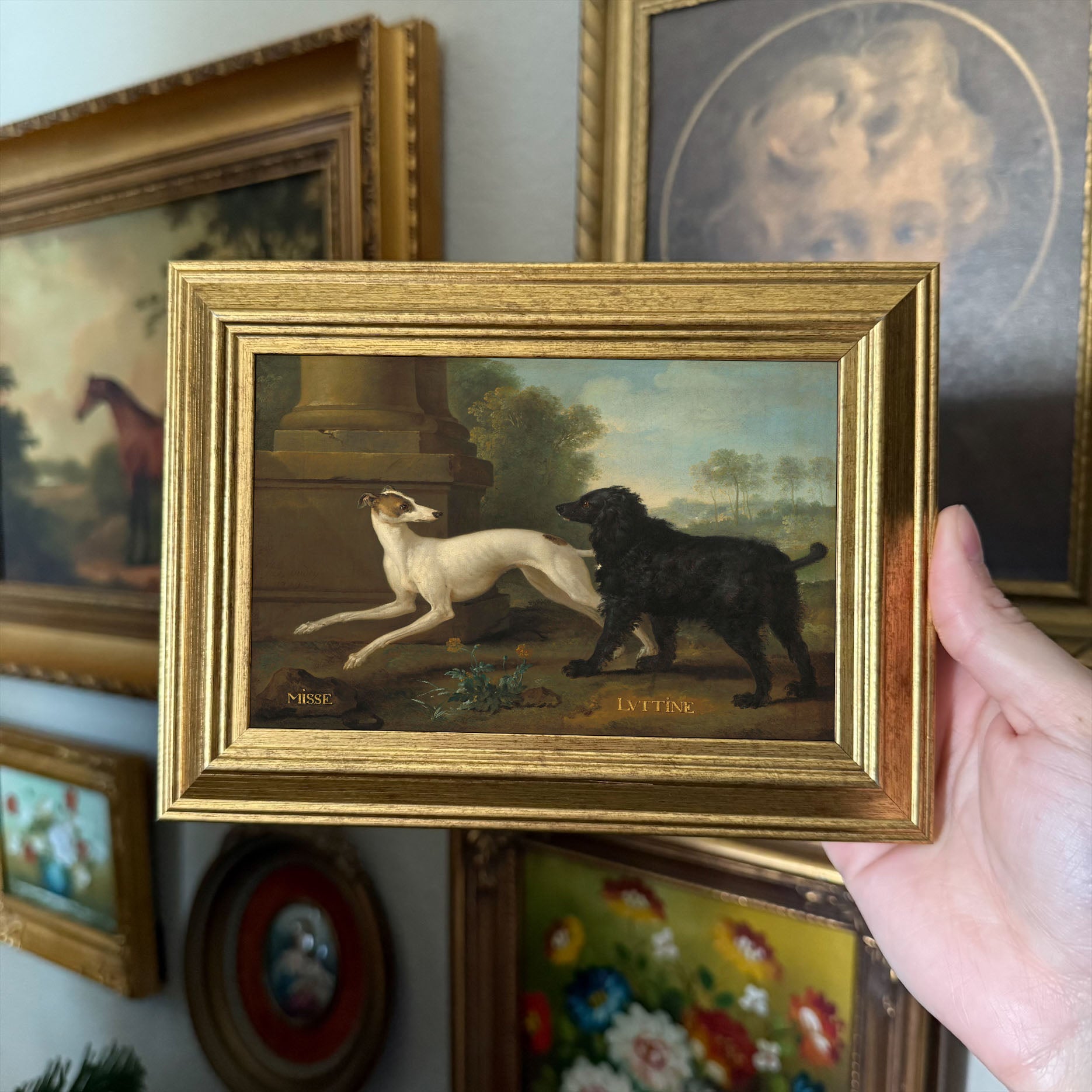Vintage Style dogs playing art Print painting art Print gallery wall