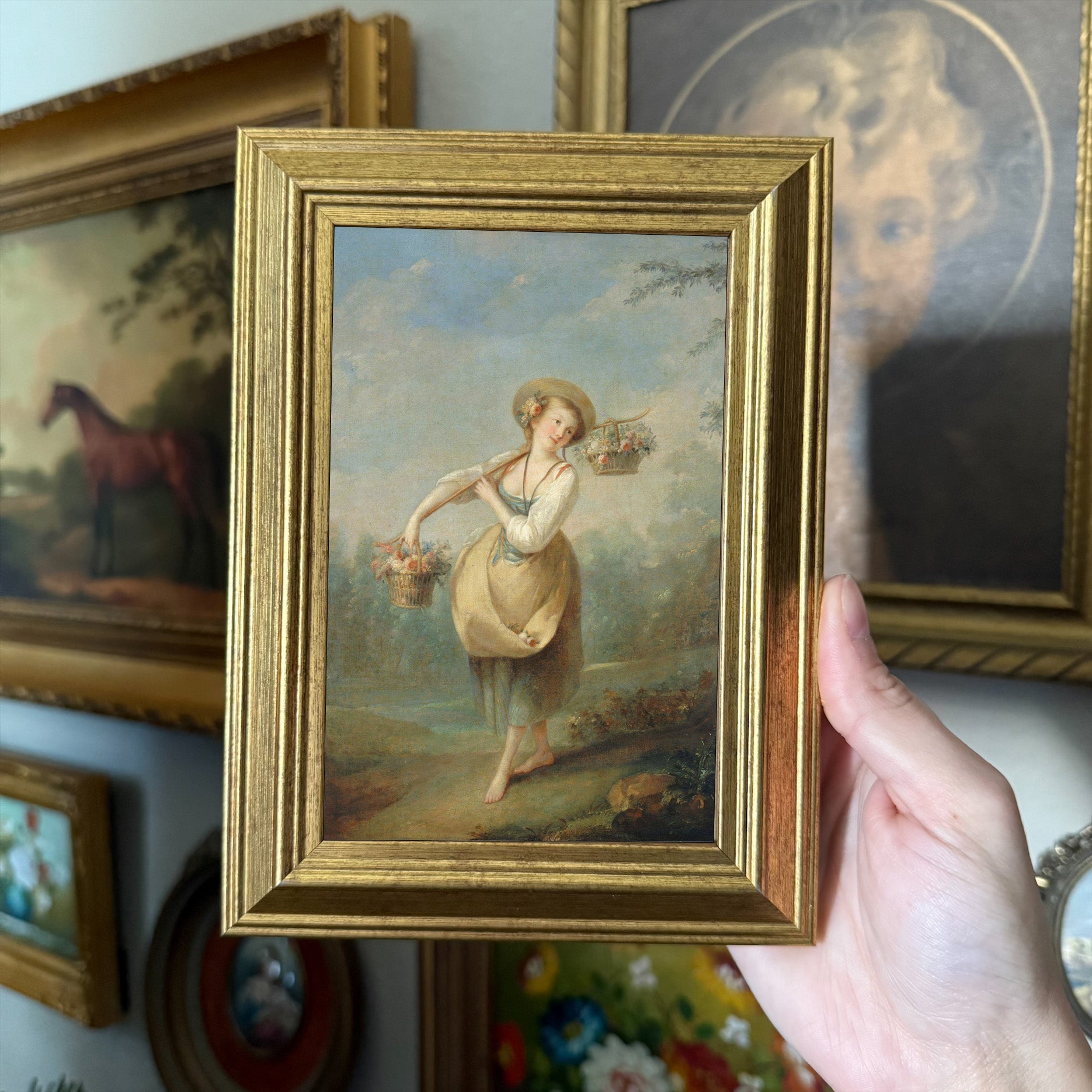 Vintage Style Girl with baskets of flowers landscape painting art PRINT gallery wall