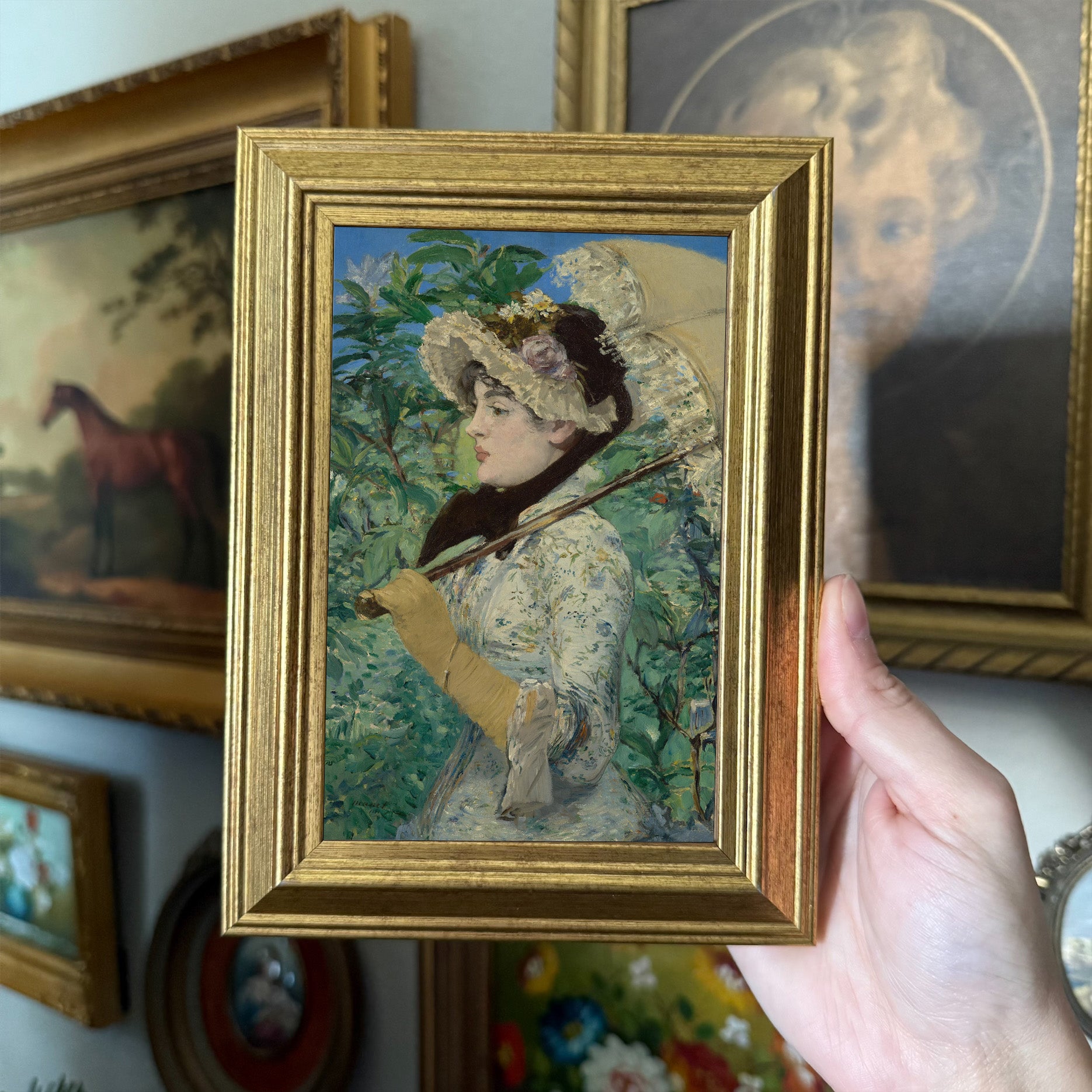 Vintage Style Jeanne Woman With and Umbrella Art Print in Gold Frame Gallery Wall