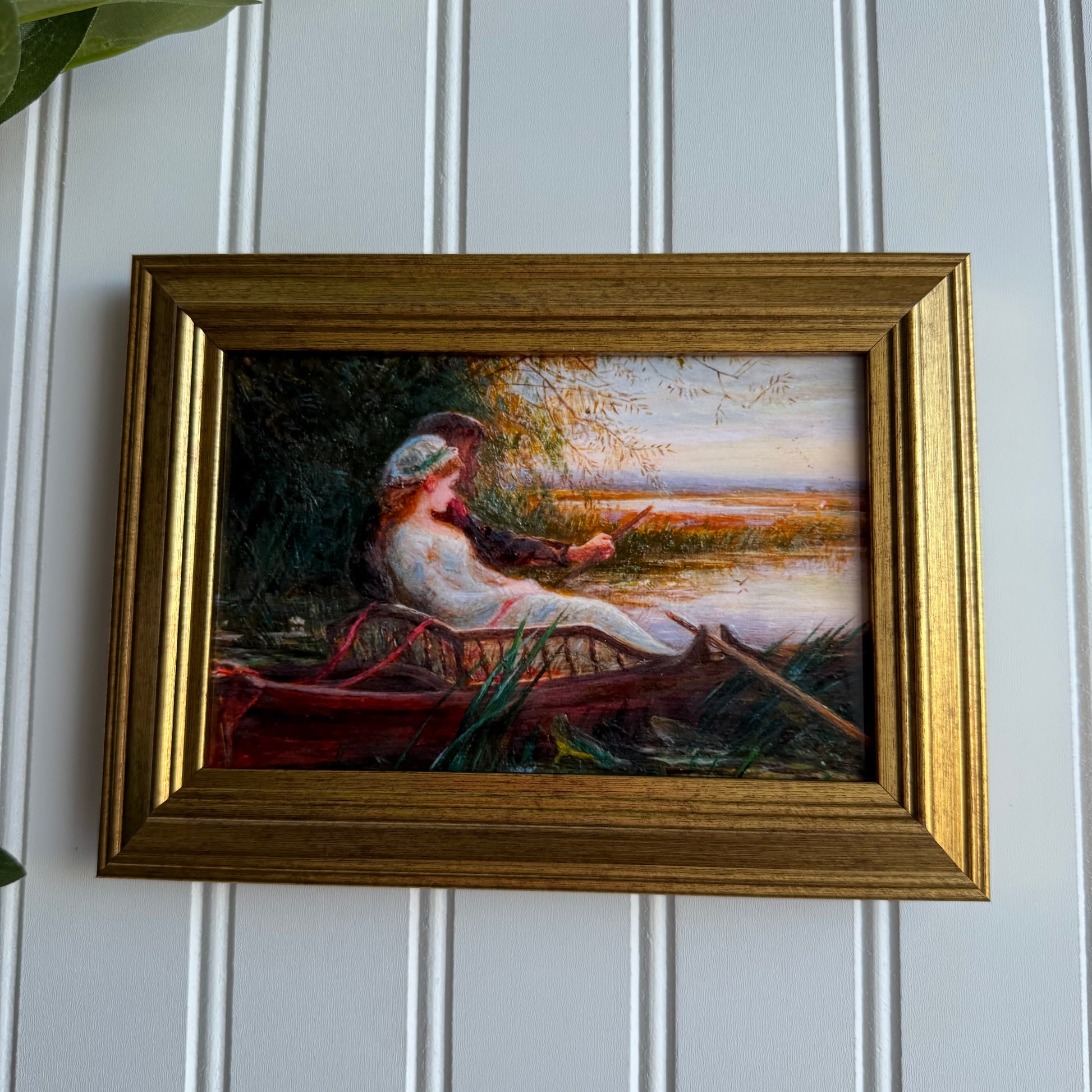 Vintage Style Victorian couple in a boat painting art PRINT gallery wall