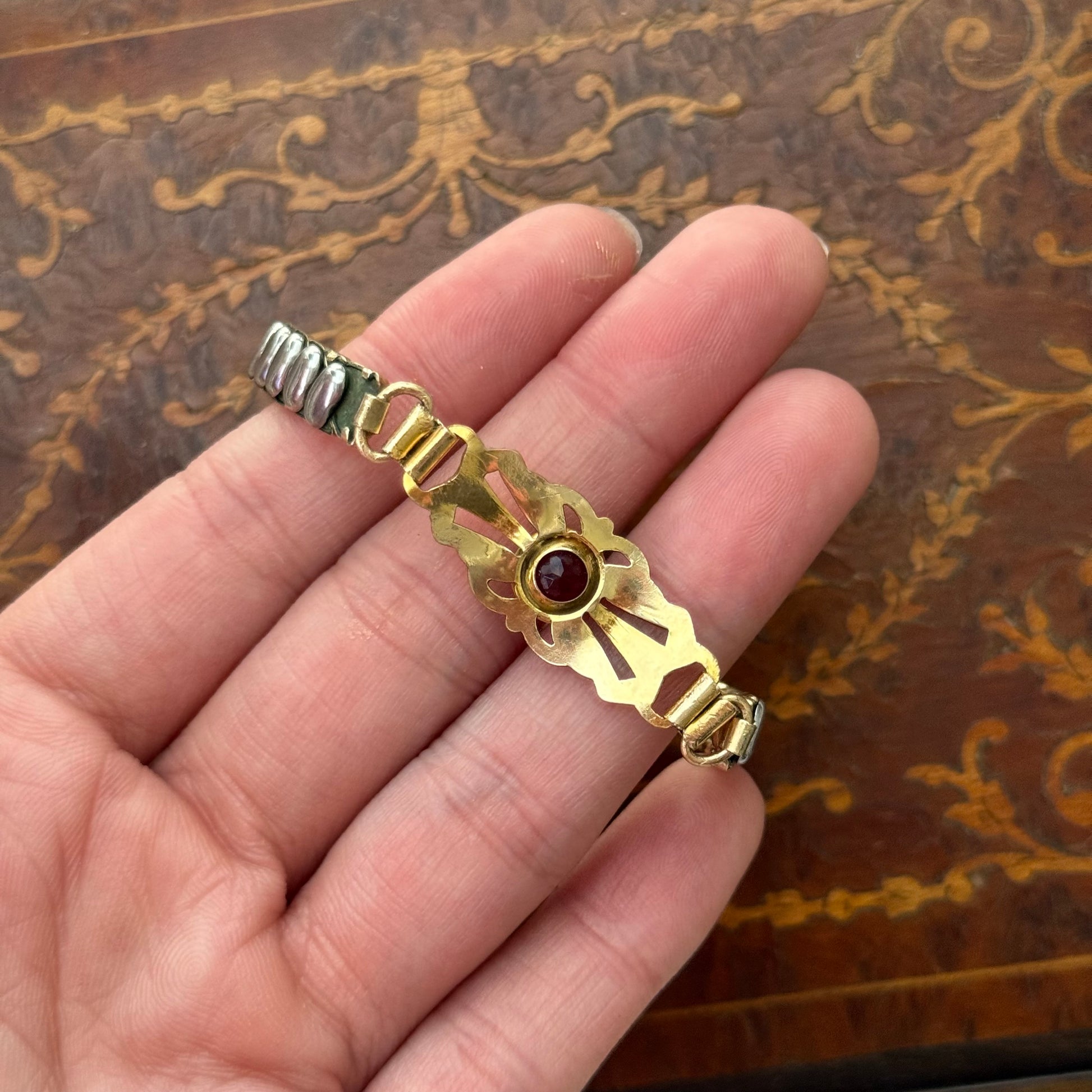 Vintage Red Rhinestone Gold tone Sweetheart bracelet
