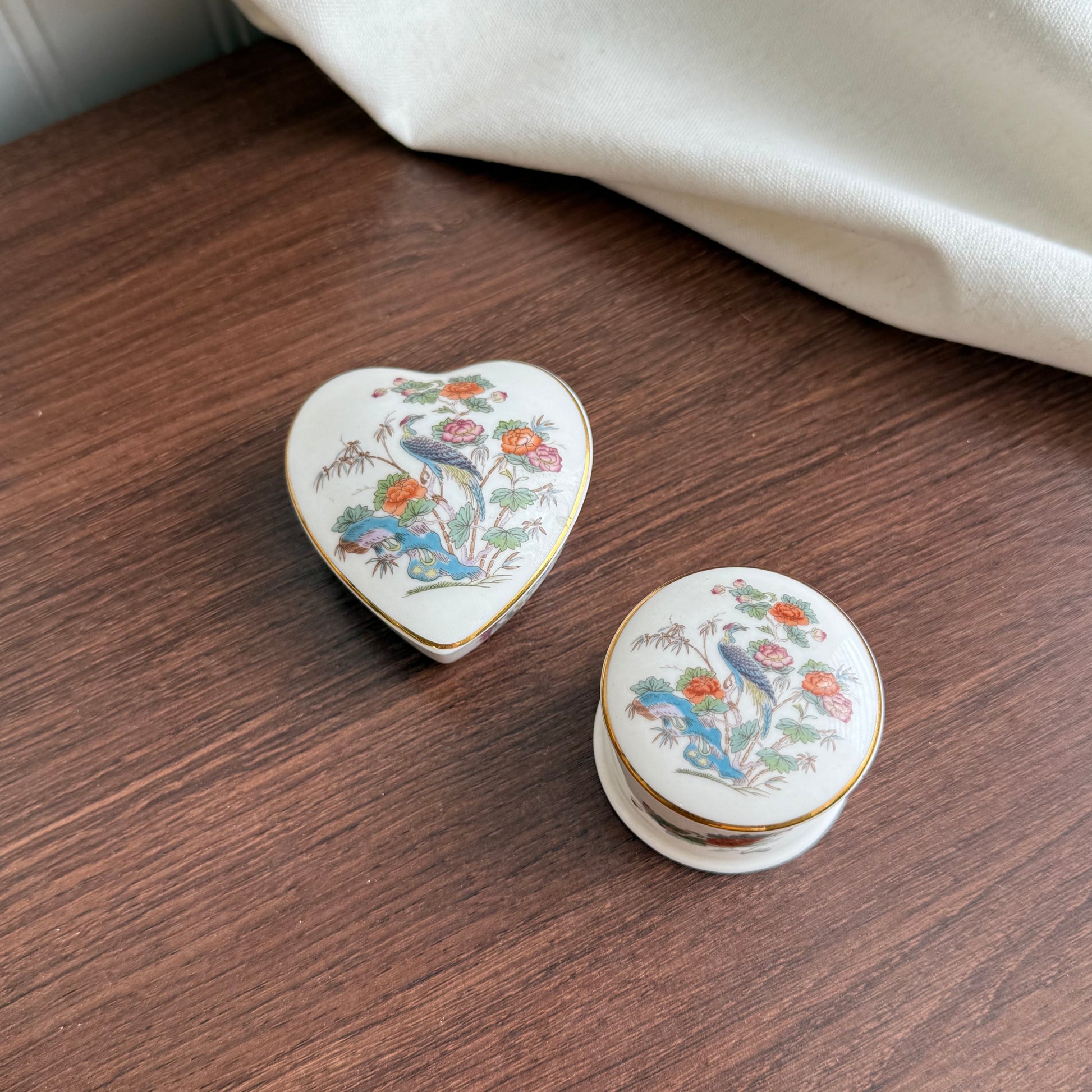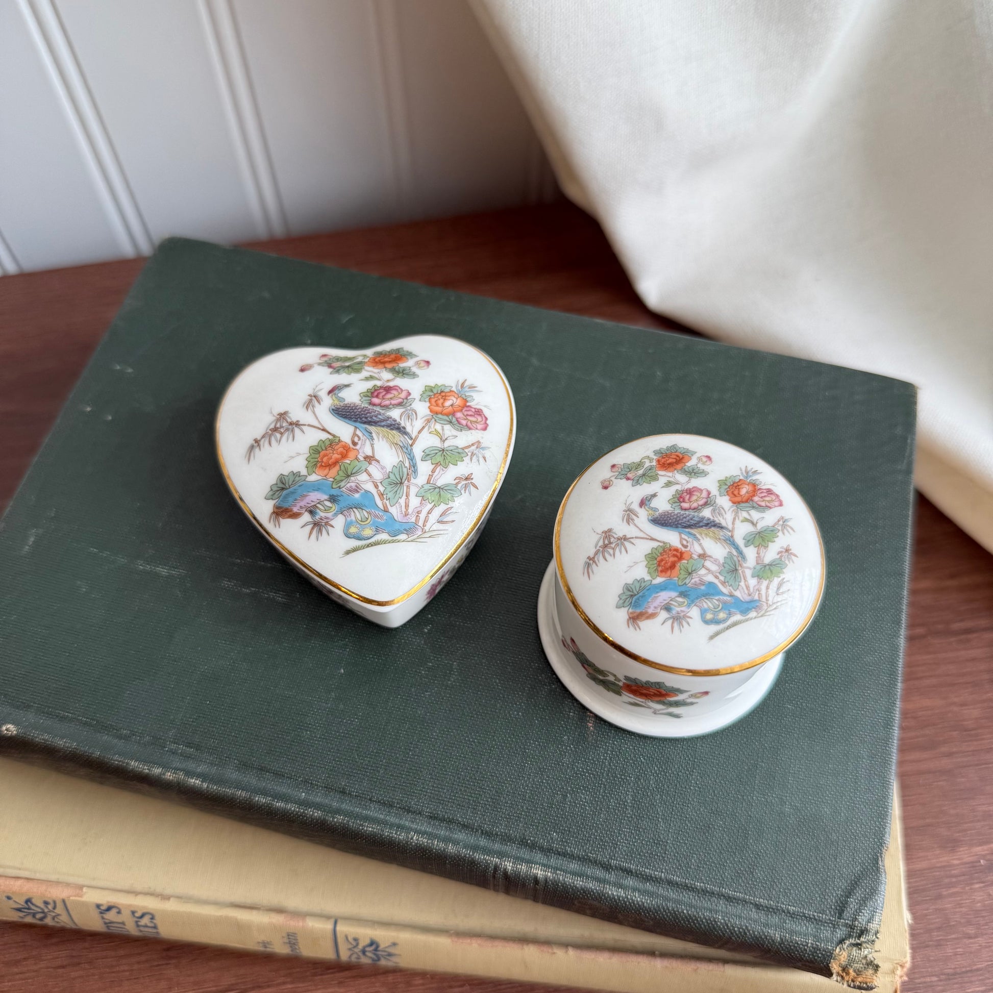 Vintage Wedgwood Kutani Crane Flowers Fine Bone China trinket box set
