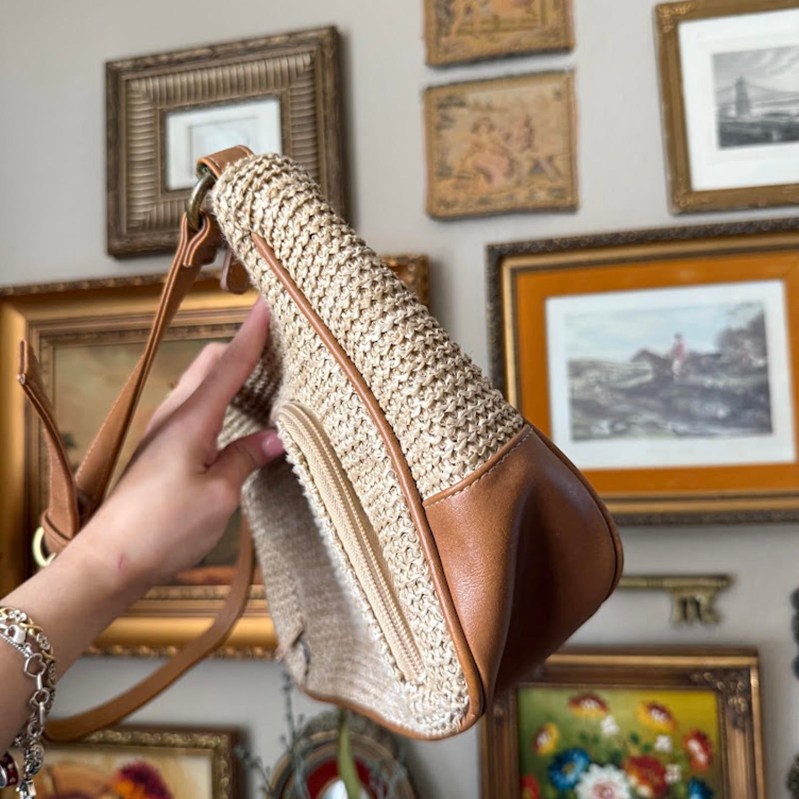 Vintage Wicker Embroidered Butterflies Shoulder Bag Purse