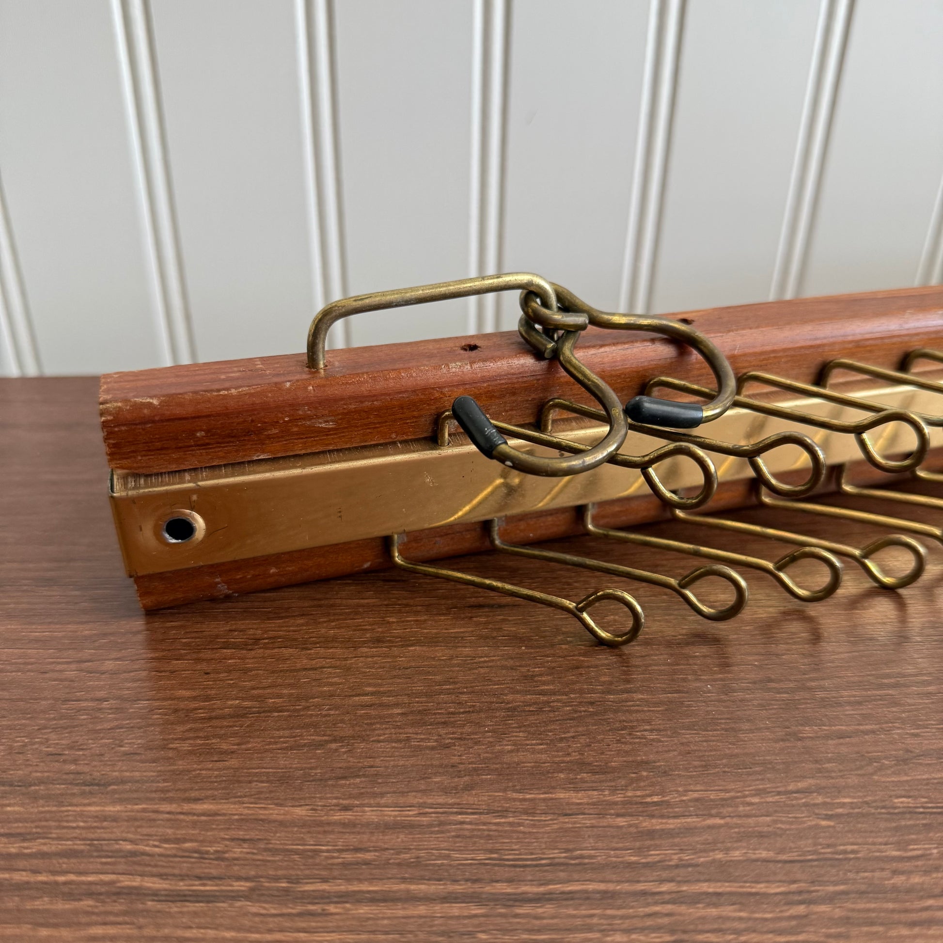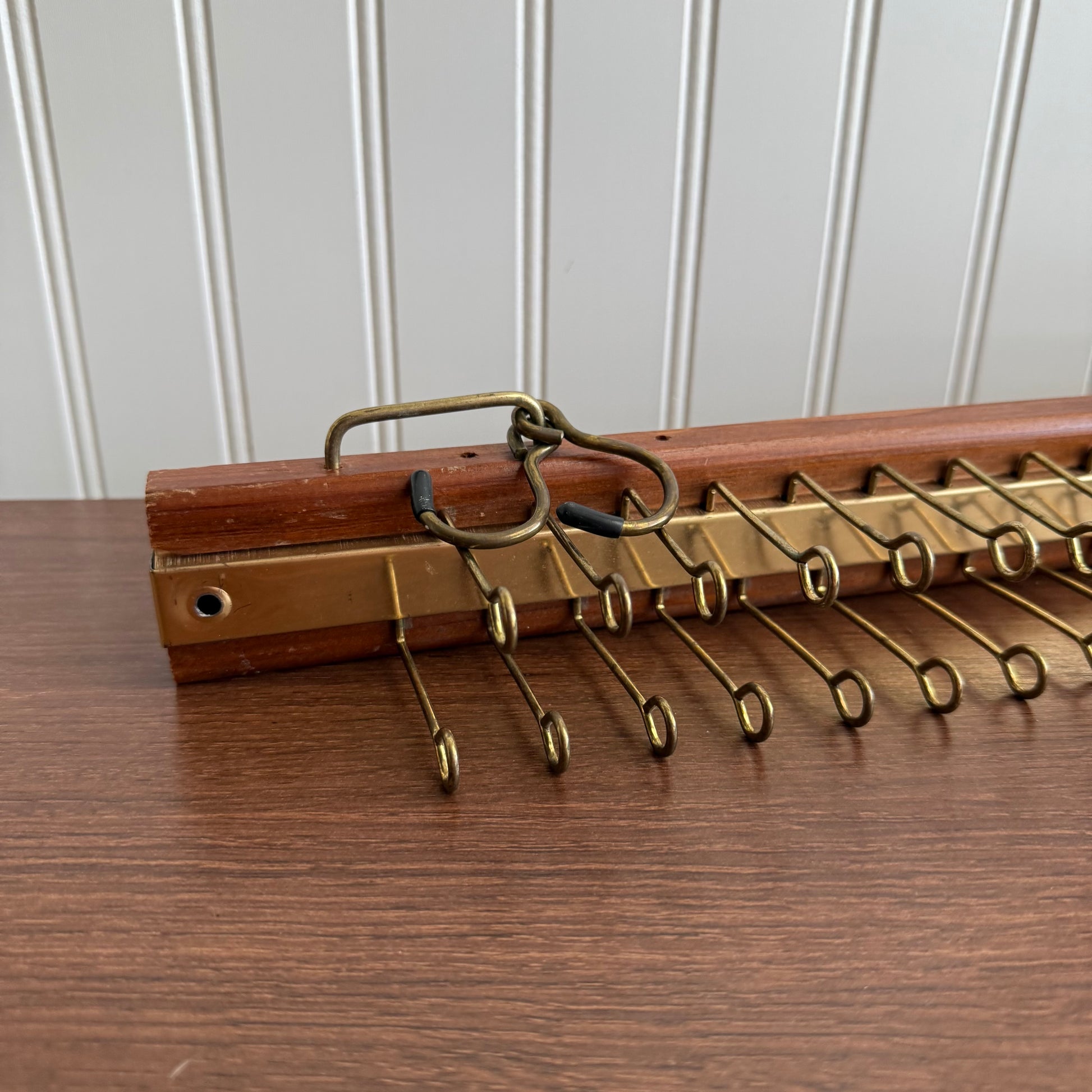 Vintage Wood and Brass Tie/Scarf/Belt Organizer