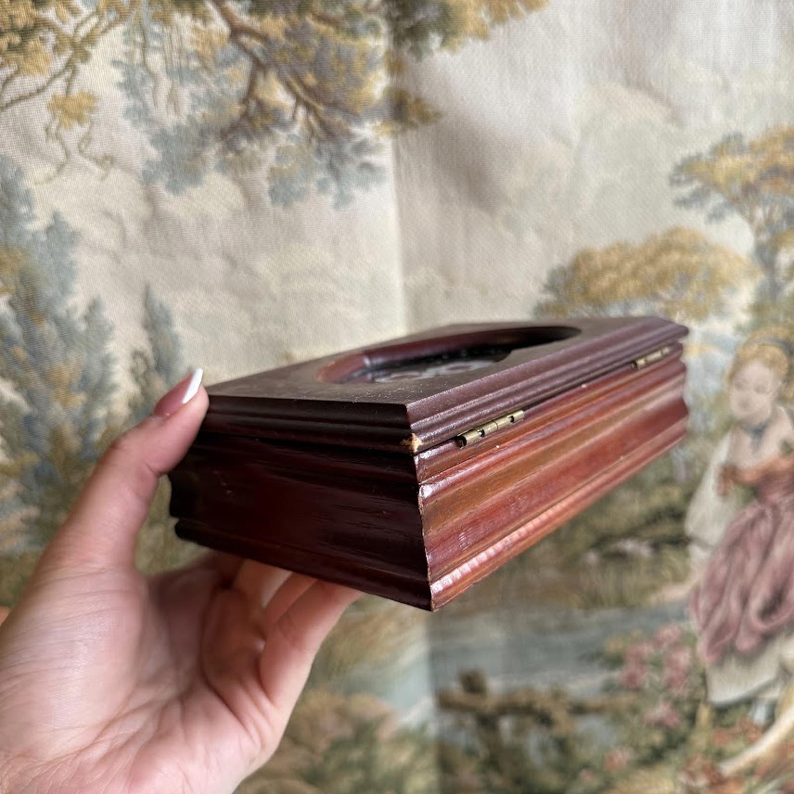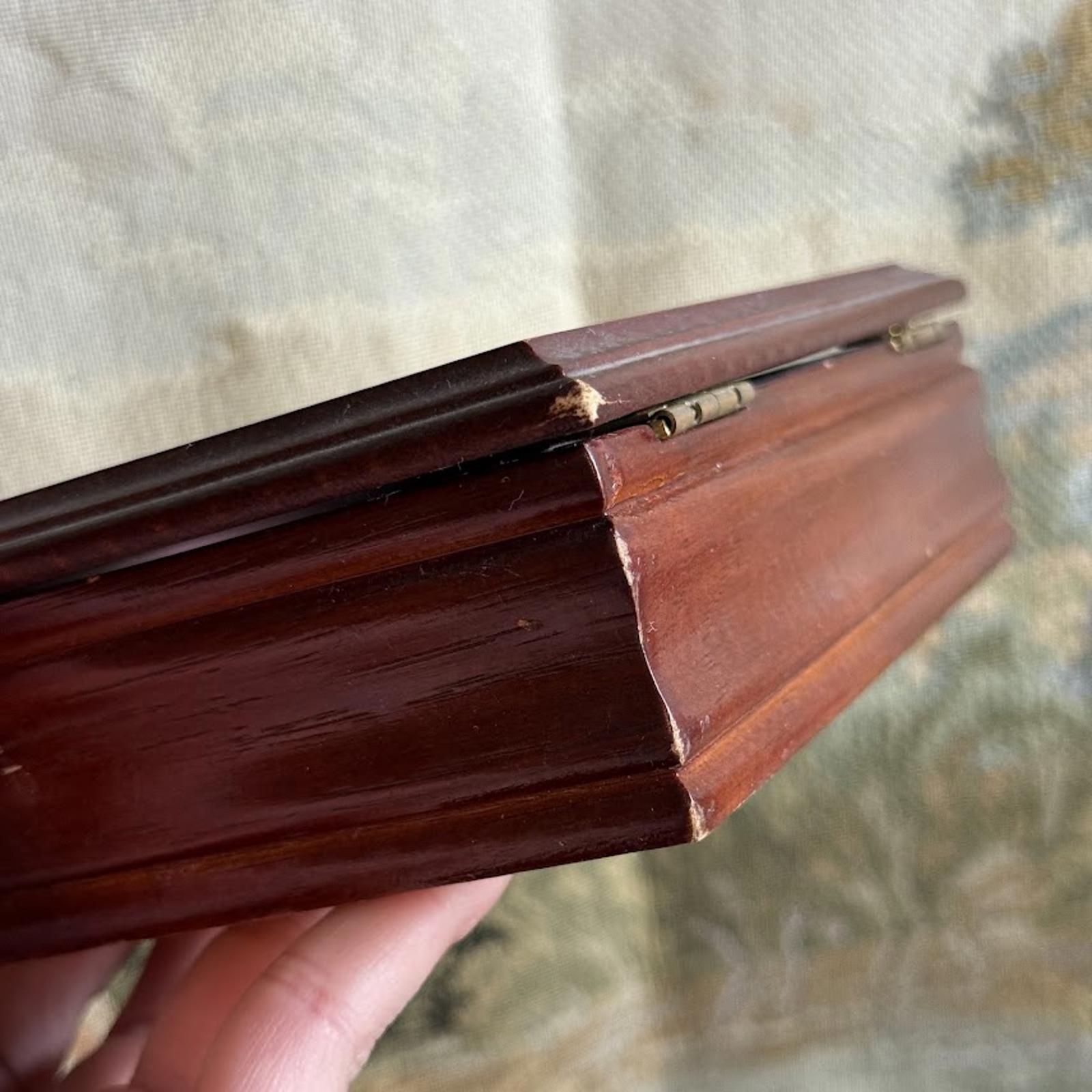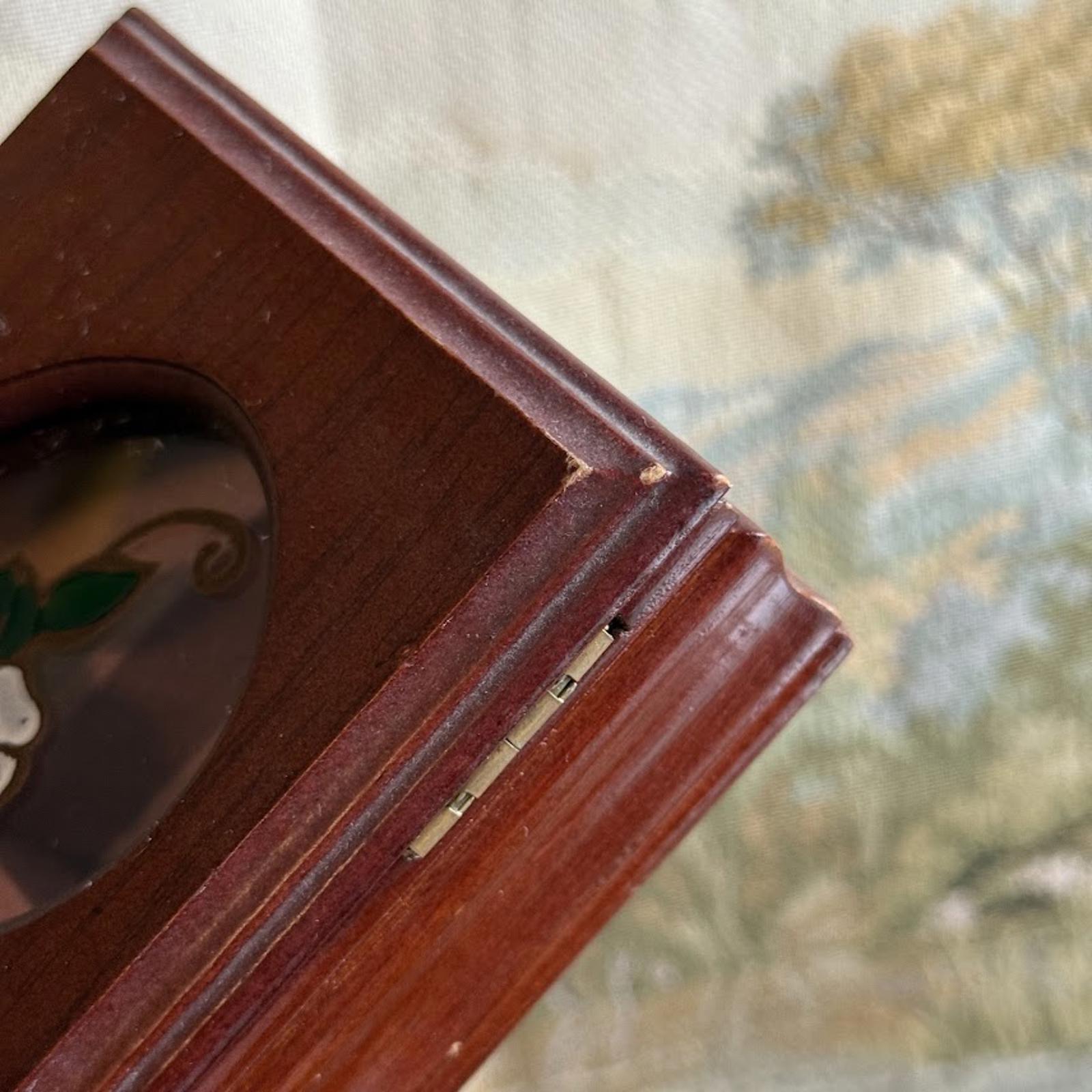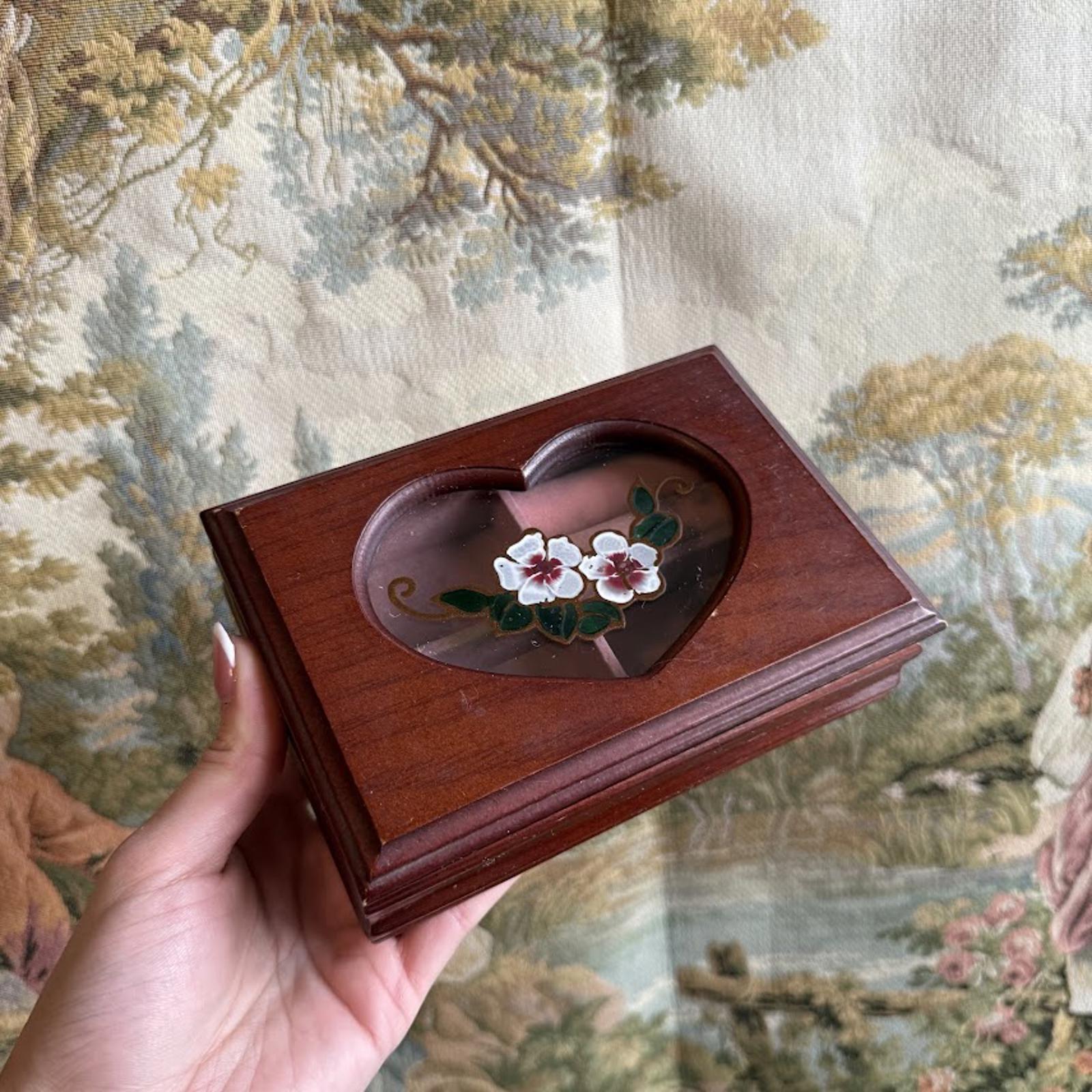 Vintage Wooden Jewelry Box with Heart Shaped Glass Window