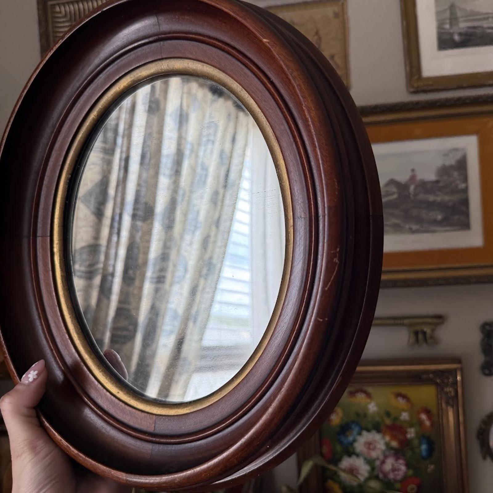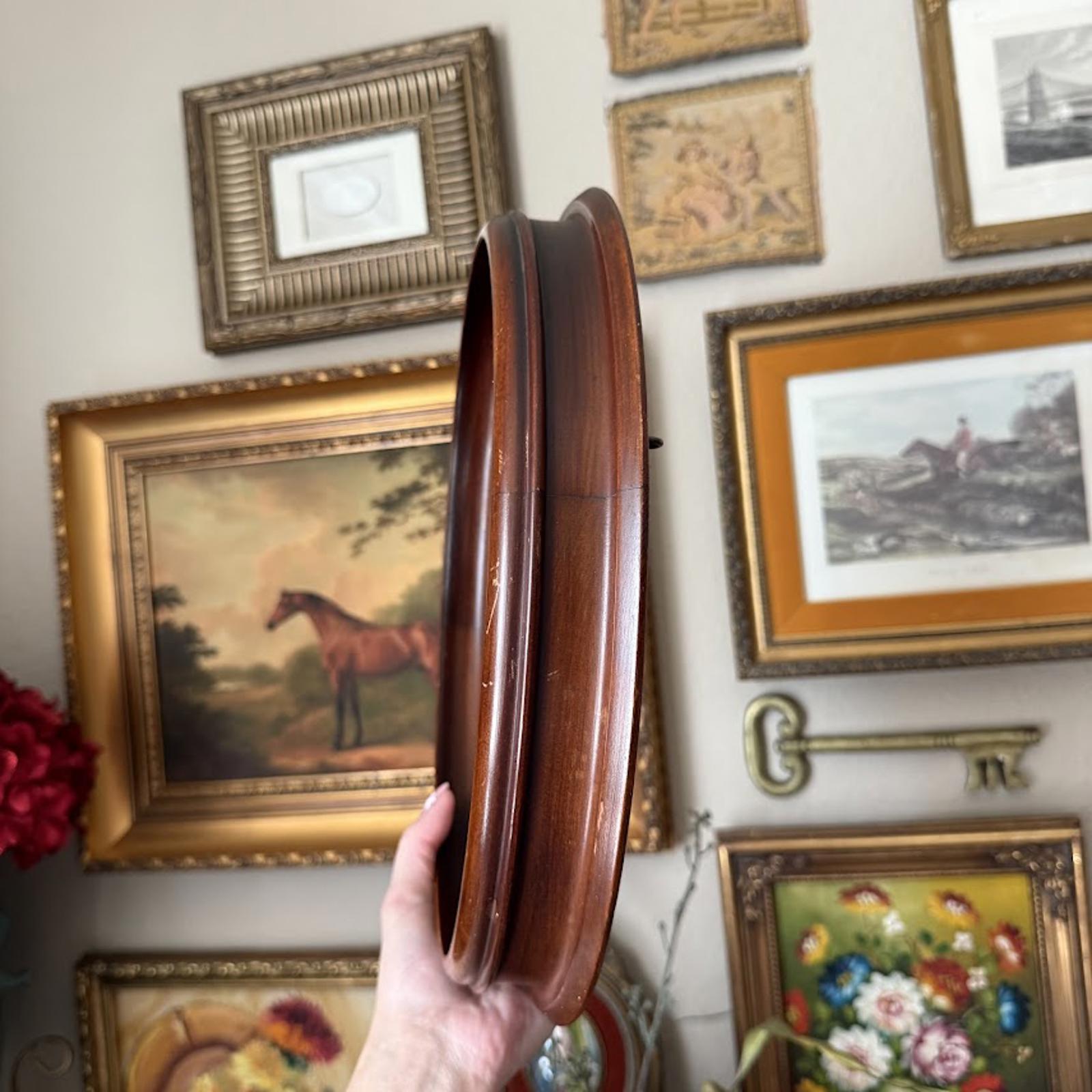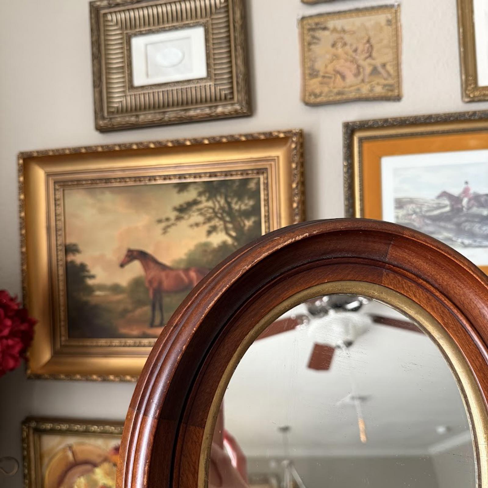 Vintage Wooden Oval Mirror
