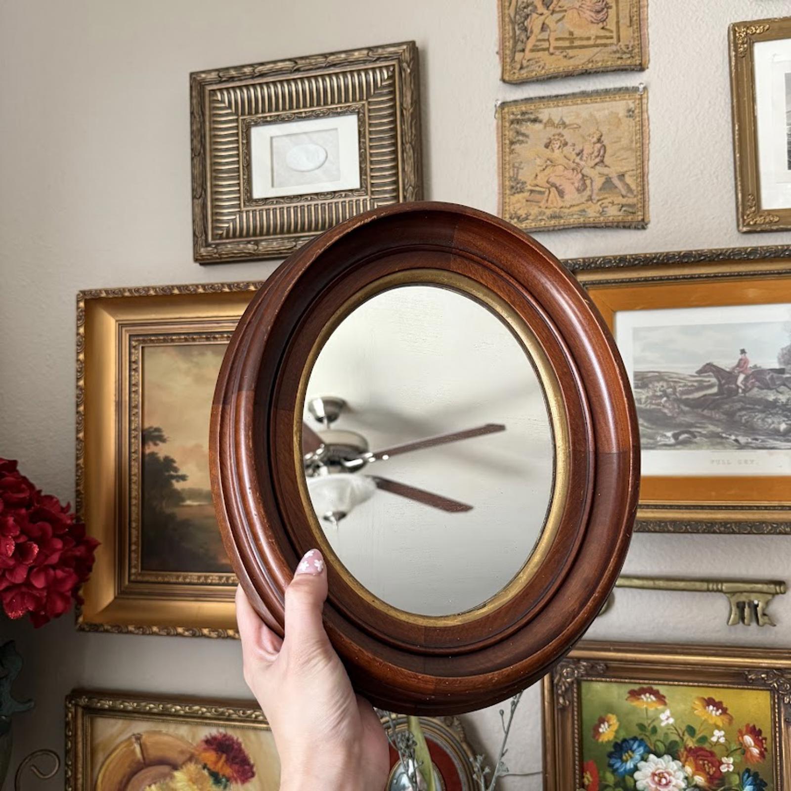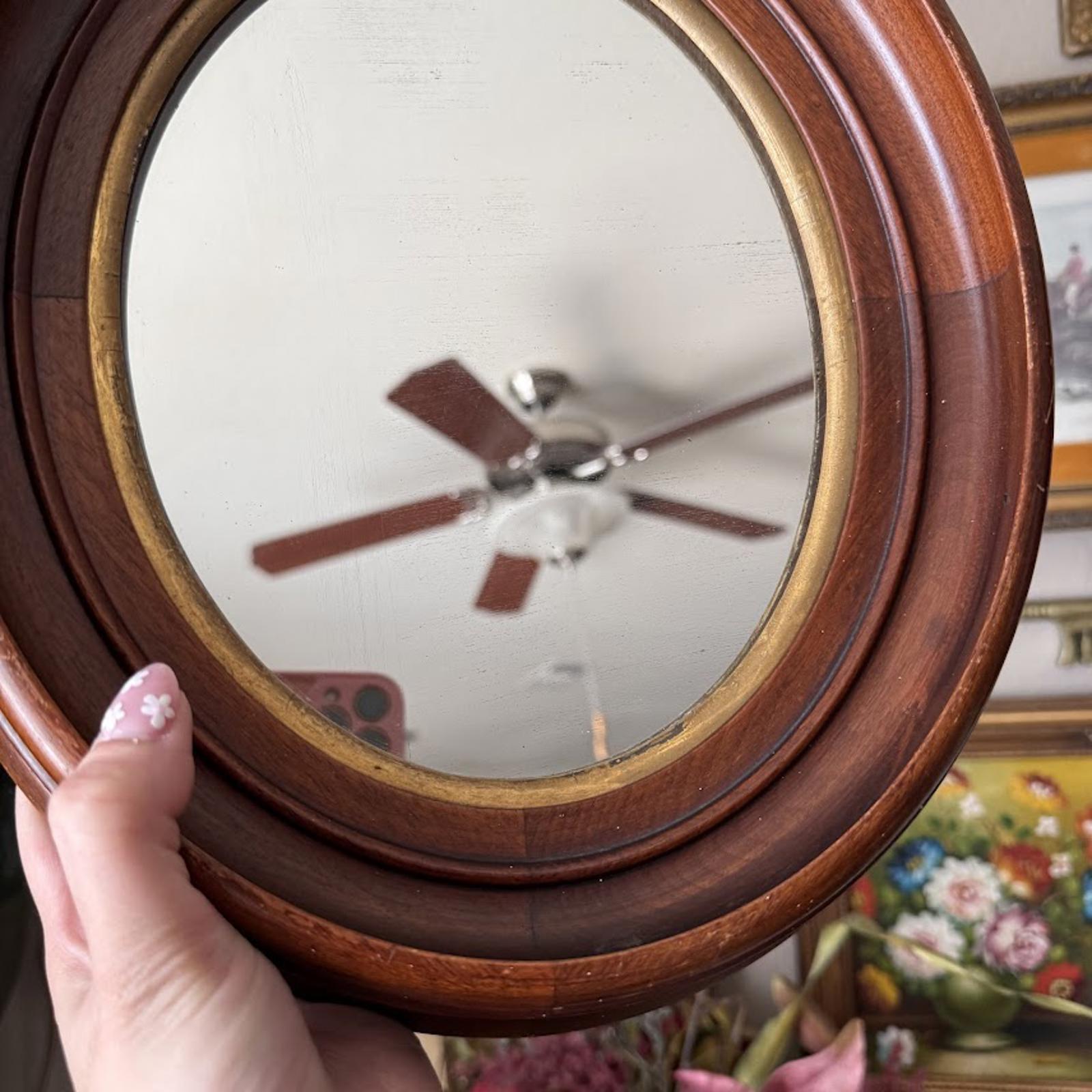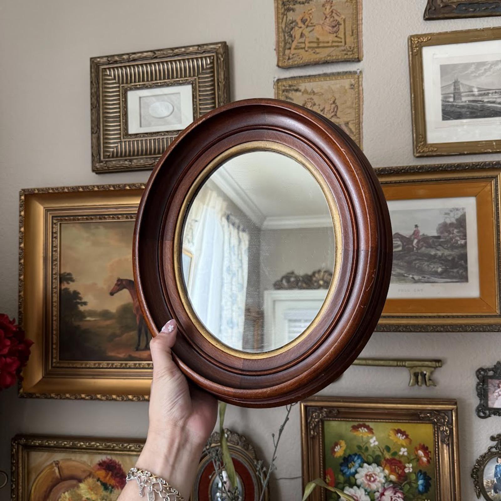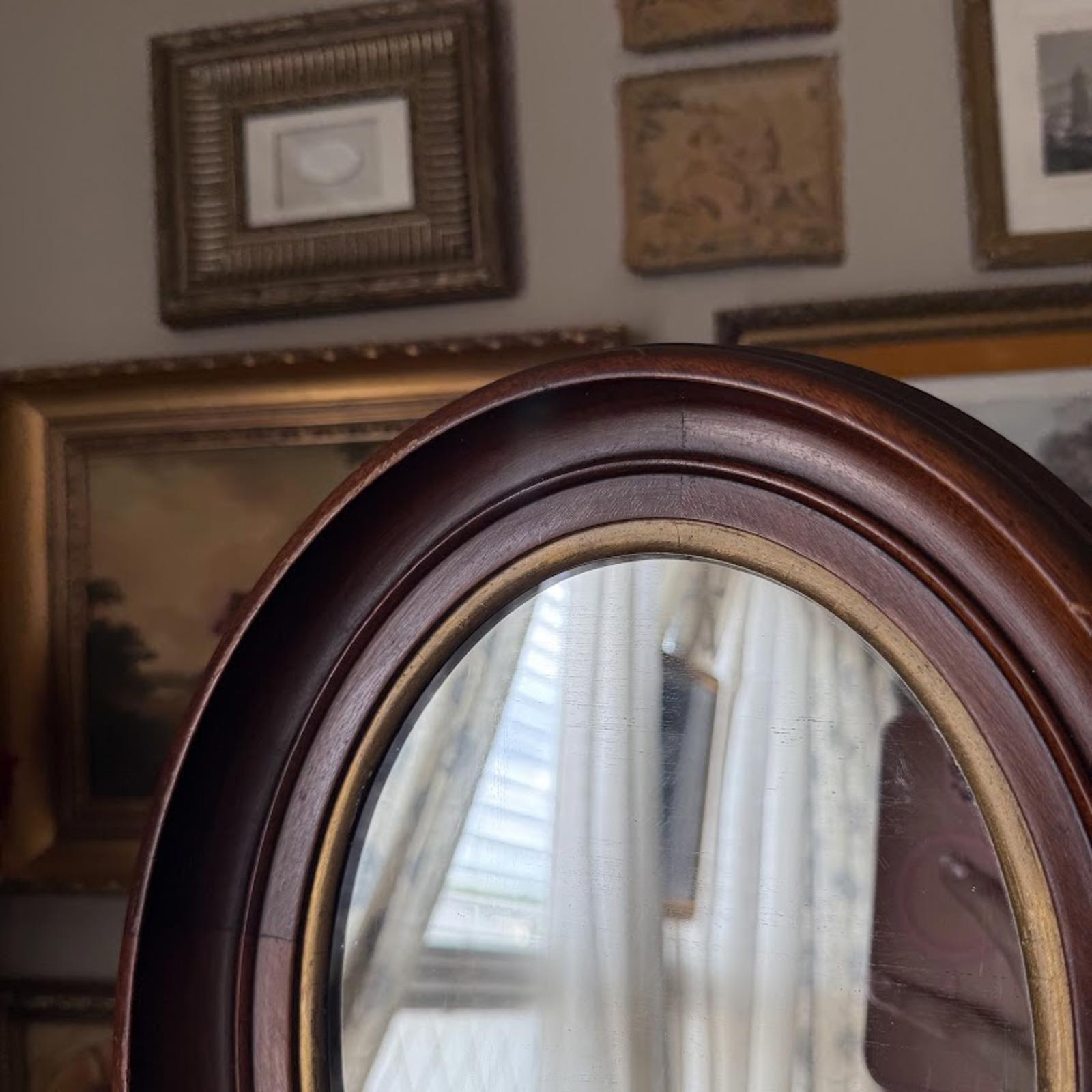 Vintage Wooden Oval Mirror